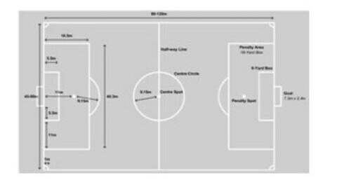 Ukuran lapangan sepak bola standar nasional & internasional (panjang & lebar lapangan + garis tengah + kotak penalti + tinggi & lebar .