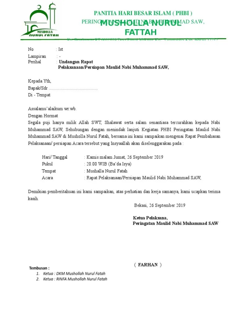 Contoh Undangan Phbi Maulid - Surat Undangan Peringatan Maulid Nabi Pdf Pdf - Dalam membuat surat undangan, selain bahasa yang sopan juga jangan .