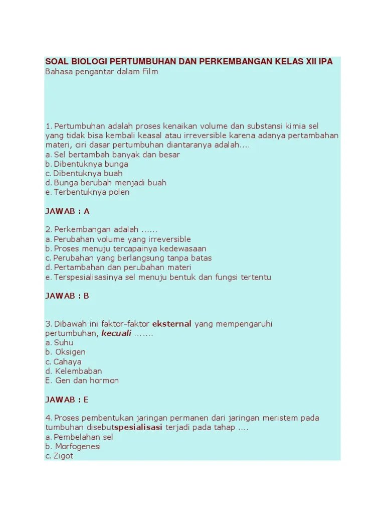 Soal Biologi Kelas Xii Pertumbuhan Dan Perkembangan - Ruangbelajar Biologi Xii Sma Pertumbuhan Dan Perkembangan Hewan Bimbel Online Youtube / Ilham melakukan percobaan pertumbuhan kecambah kacang dengan intensitas cahaya berbeda.. Ilham melakukan percobaan pertumbuhan kecambah kacang dengan intensitas cahaya berbeda. Soal biologi pertumbuhan dan perkembangan kelas xii ipa · author / uploaded · darwin spdmpd . Biologi#12ipa#pertumbuhandanperkembanganvideo pembahasan latihan soal biologi 12 ipa: Kamu sedang belajar materi biologi sma kelas 12? Pertumbuhan dan perkembanganterima kasih sudah .